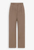 Taupe low-rise trousers in smooth Pima cotton with straight leg, front double pleats and side welt pockets.