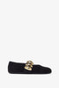Black suede ballet flats from Alaïa. The Black Jewel ballet flats are made of suede goatskin leather enhanced with golden pebbles on the straps, an elastic strap and rounded toes, set on a rubber sole.