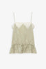 Green silk tank top with lace from Chloé. The Silk tank top is made in organic silk with a roses jacquard, featuring lace trims and a drawstring waist finished with gold-tone metal tips.