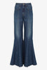 Fluid flare jeans from Chloé. The jeans are made in lightweight indigo denim, feature a front zipper, Chloé-engraved button fastening, a classic 5-pocket design with belt loops and a leather Chloé logo patch in the back.